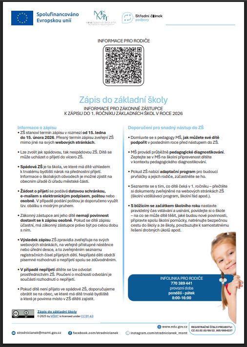 Zápis do ZŠ Komenského i ZŠ Smetanova ve Skutči se uskuteční ve středu 21. ledna 2026 v čase od 13.00 do 18.00 hodin.